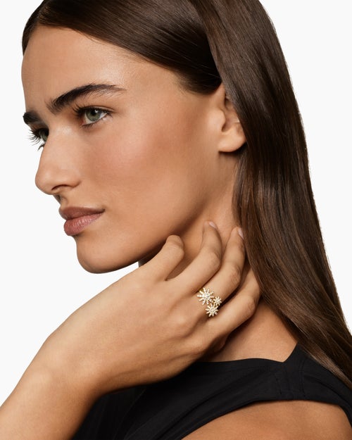 Starburst Multi Star Ring 18K Yellow Gold with Diamonds, 17.7mm