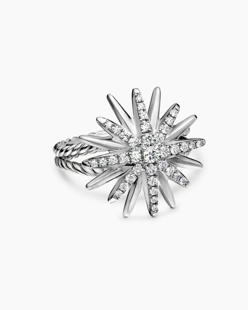 Starburst Ring Sterling Silver with Diamonds, 19mm