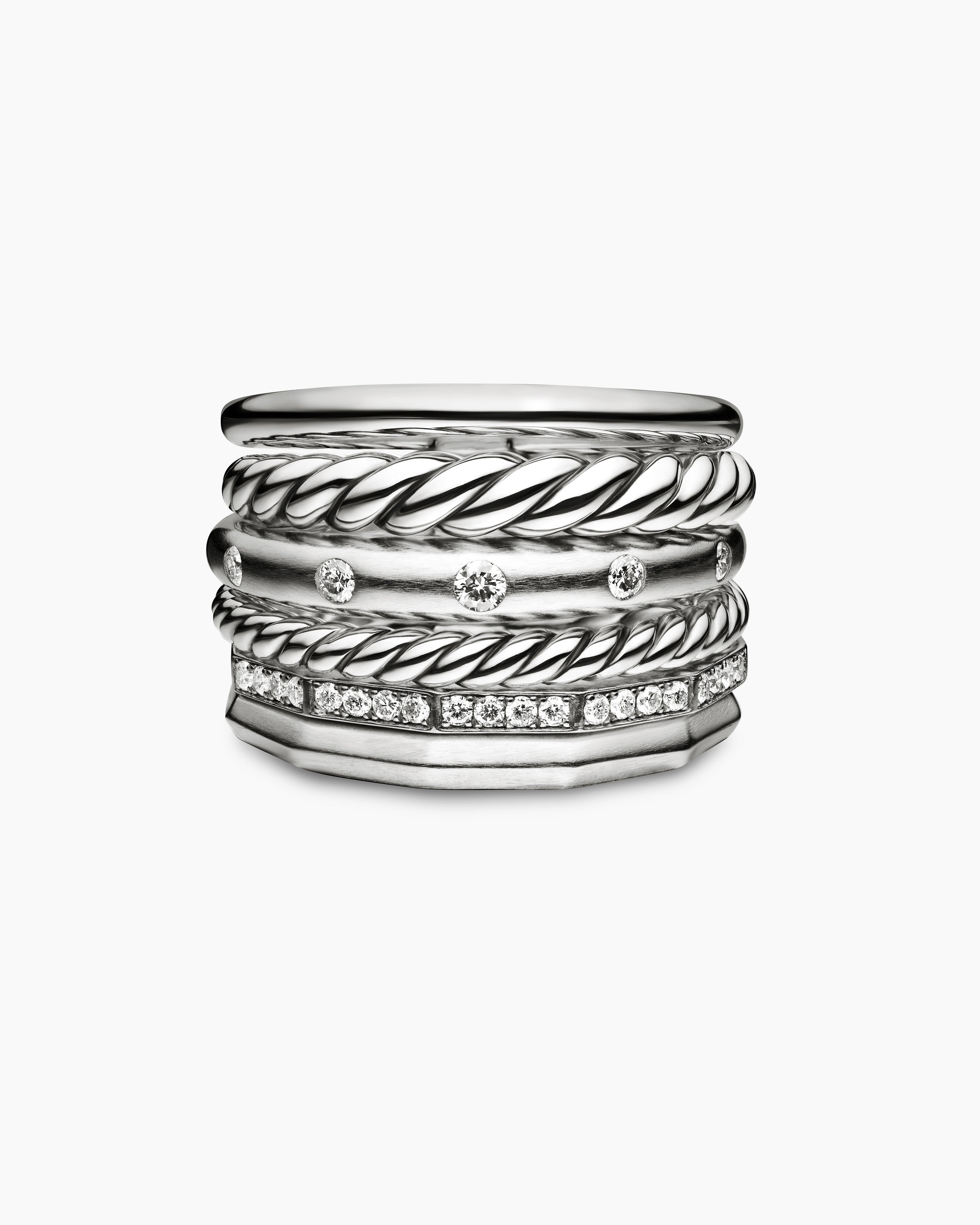 Stax Six Row Ring Sterling Silver with Diamonds, 16mm