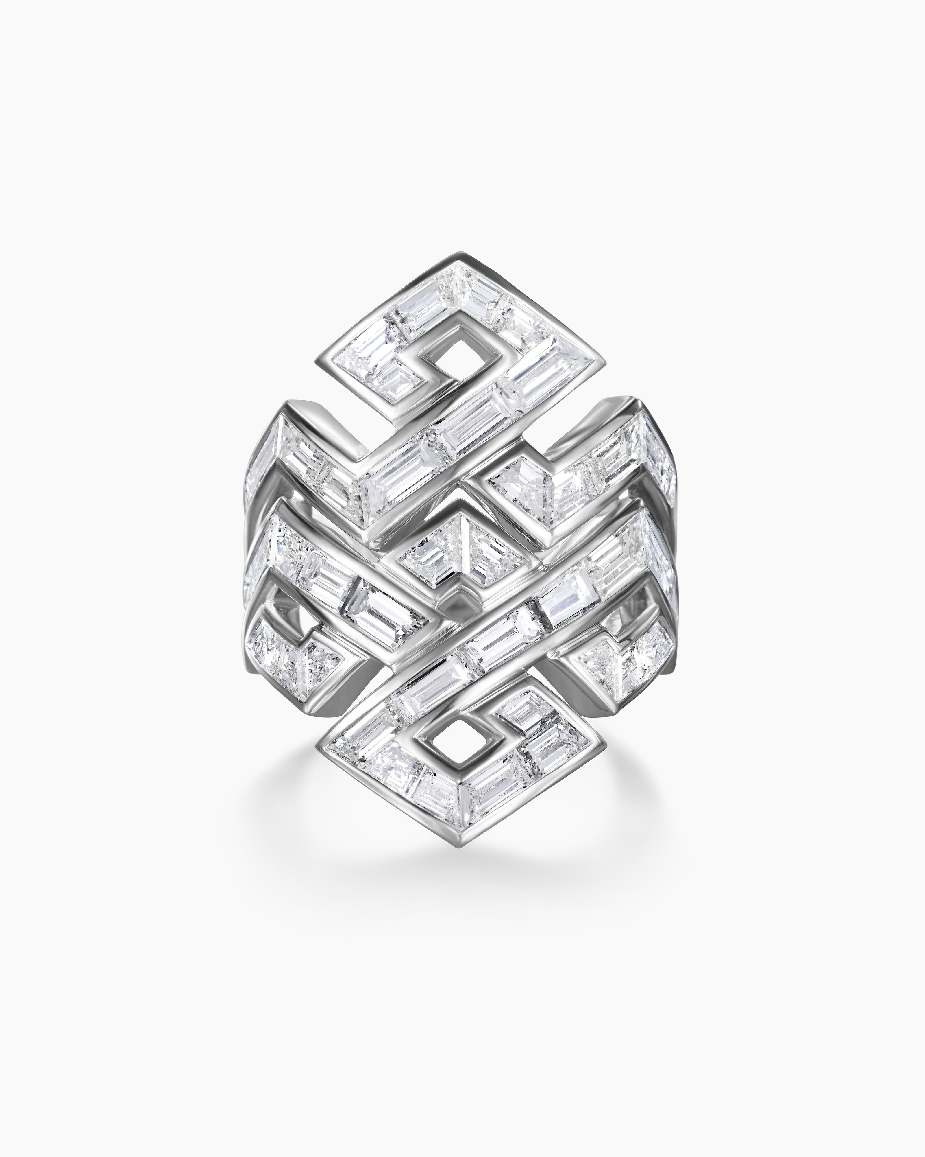 Stax Zig Zag Baguette Ring White Gold with Diamonds